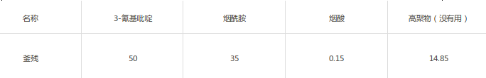 附圖爲液相檢測1、3-氰基吡啶是主要现有產品,希望通過負壓蒸餾回收 2、煙酰胺、煙酸回收價值較低; 三、釜殘的描述釜殘的粘度和3-氰基吡啶的含量、溫度有關系。釜殘隨着3-氰基吡啶含量的降低而增大, 1、 此3-氰基吡啶50%含量的釜殘,溫度降低至常溫後,固化粘度增大,當溫度再升高時,很難再次軟化;(與瀝青有所不同之處) 2、 當3-氰基吡啶含量降低到10%以下後,降至常溫,固體呈木炭狀,升溫也不再軟化。 四、回收設備要求1、預計實行減壓-0.09Mpa,溫度180℃的條件下回收; 2、釜殘在高溫時處理,一旦降溫後將很難進行二次處理, |